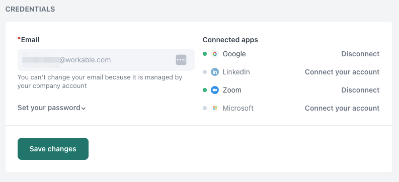 Update your email address from Your profile section of Workable.Click your profile icon in the upper right and select Your profile.