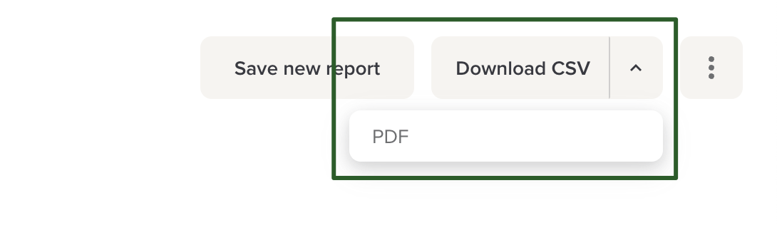 When you view a report, an export option will be displayed in the upper right corner. You have the ability to download the data as a CSV or PDF file (if applicable).