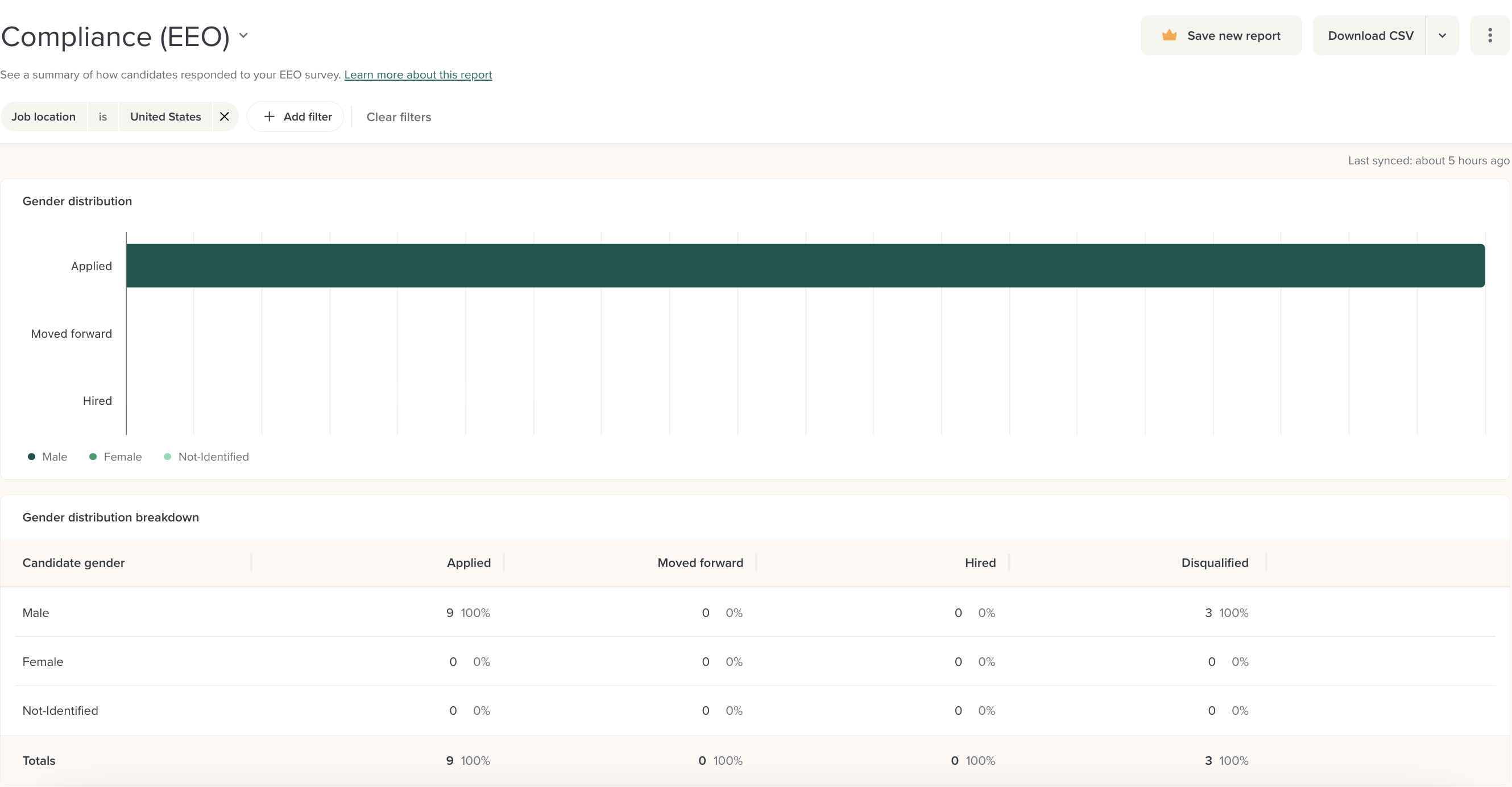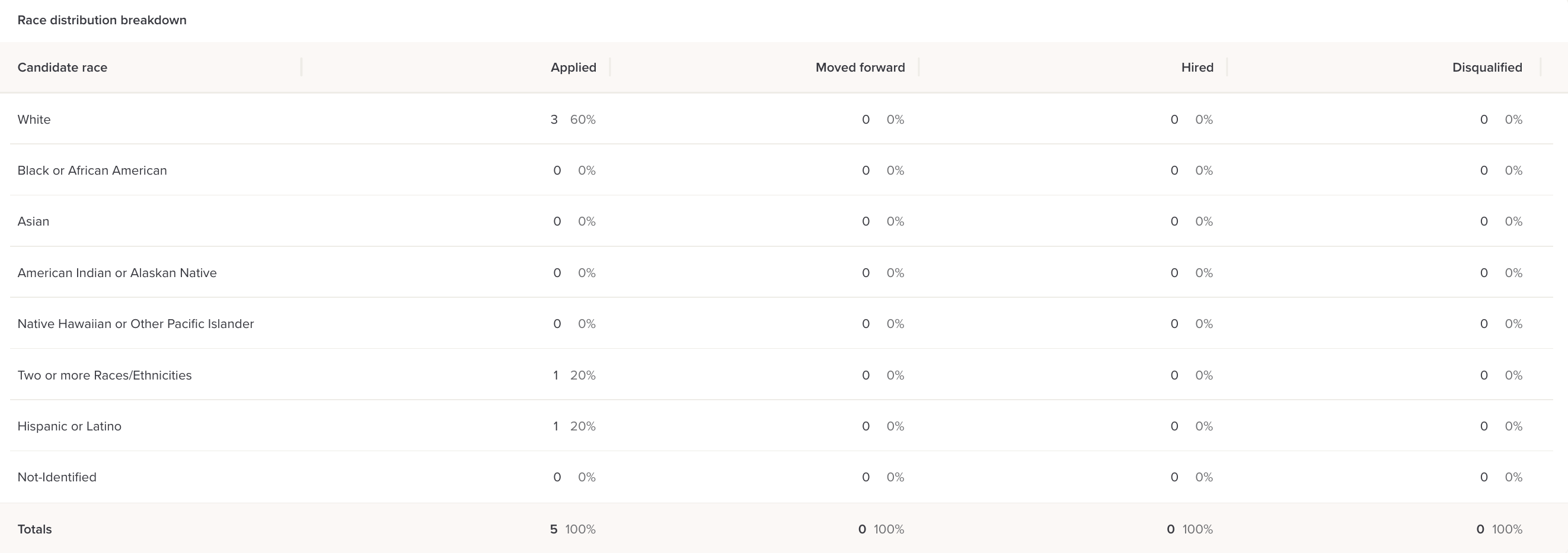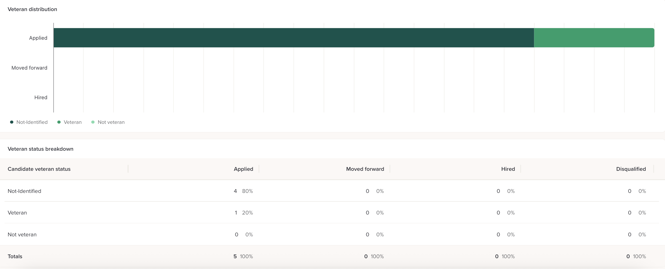 This section shows you the number and percentage of candidates with a veteran status: