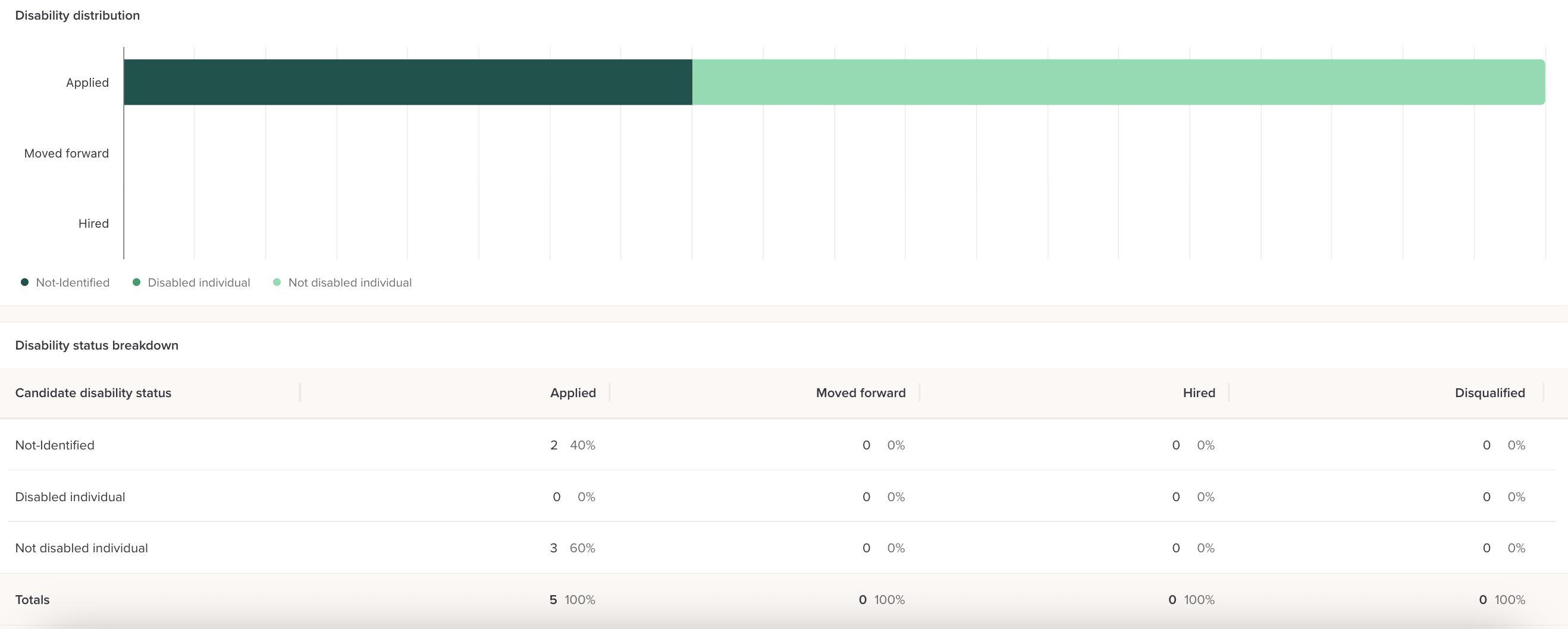 This section shows you the number and percentage of candidates with a disability: