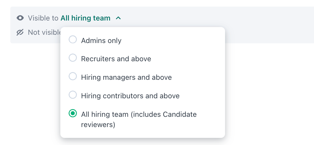 Depending on your needs, you can either restrict the visibility of comments manually or set a Confidential zone for specific stages of your pipeline. The visibility of comments works per user type and not per specific member of the hiring team.