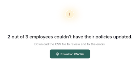 | Employee already assigned to another policy for <time off type> | Update the CSV or employee profile so the policy matches |