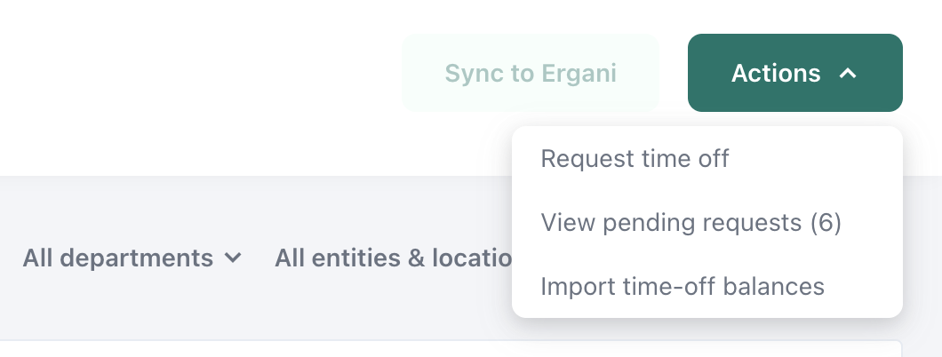 Approvers of time-off requests will be able to see all the approvals that are pending for their actions as a list. Under the Actions menu, click View pending requests. Approve/reject directly from this view without the need to go to each employee profile or your inbox.