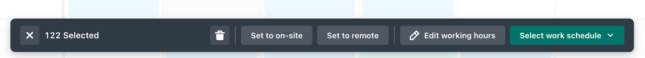- Make ad-hoc edits for fixed work schedule workers, for example, bulk edit working hours and/or workplace for specific dates and employees.