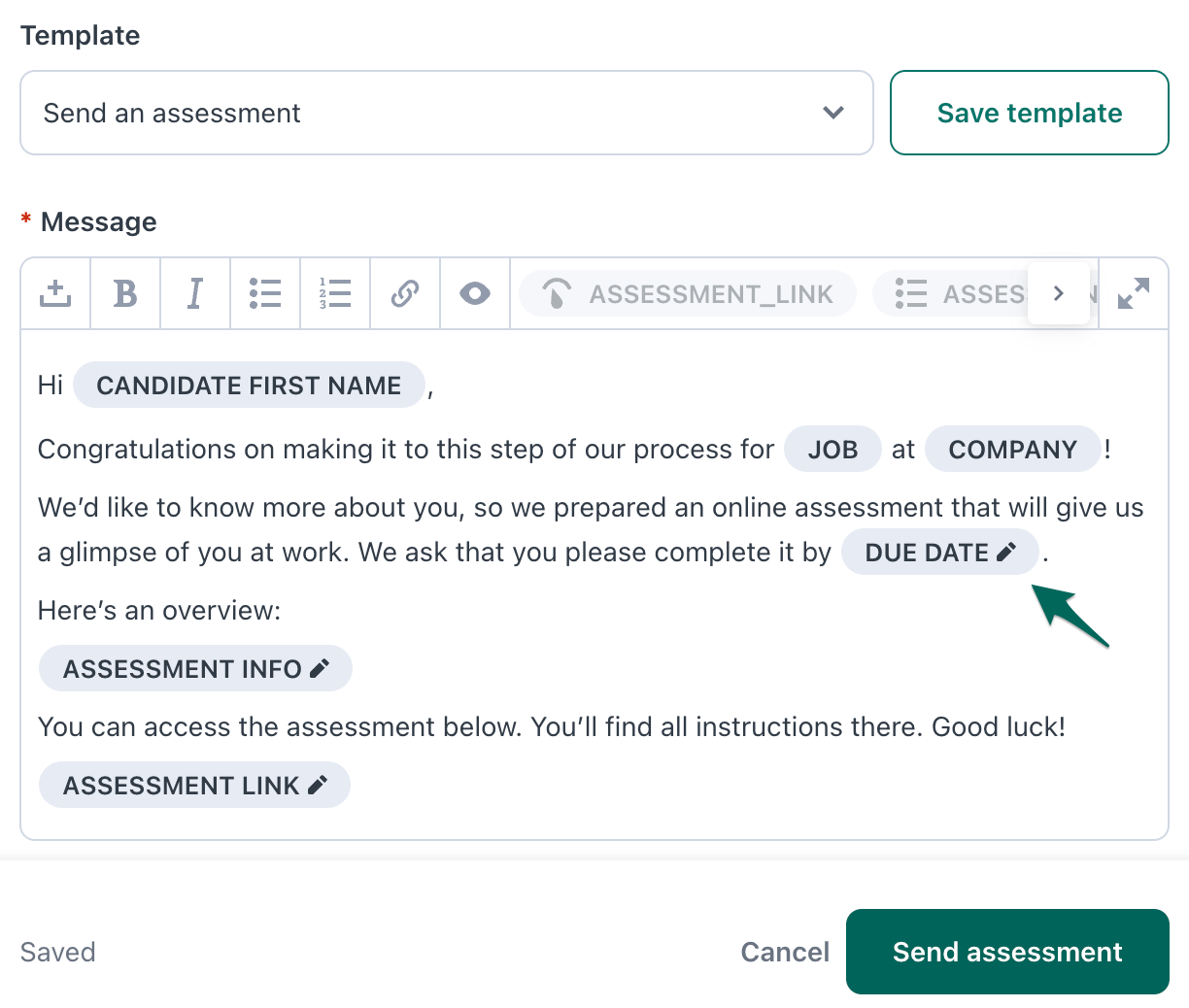 - You can edit the date, time, and timezone when the assessment will expire. This will only adjust the due date for the candidate - or candidates if emailing in bulk - you are contacting with this email.