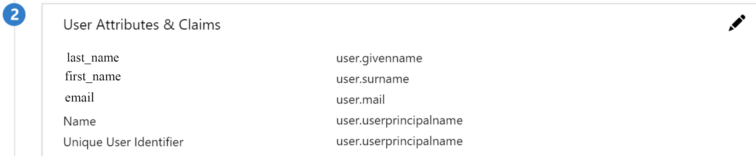 In Entra ID, open User Attributes & Claims and click to edit (pencil icon).