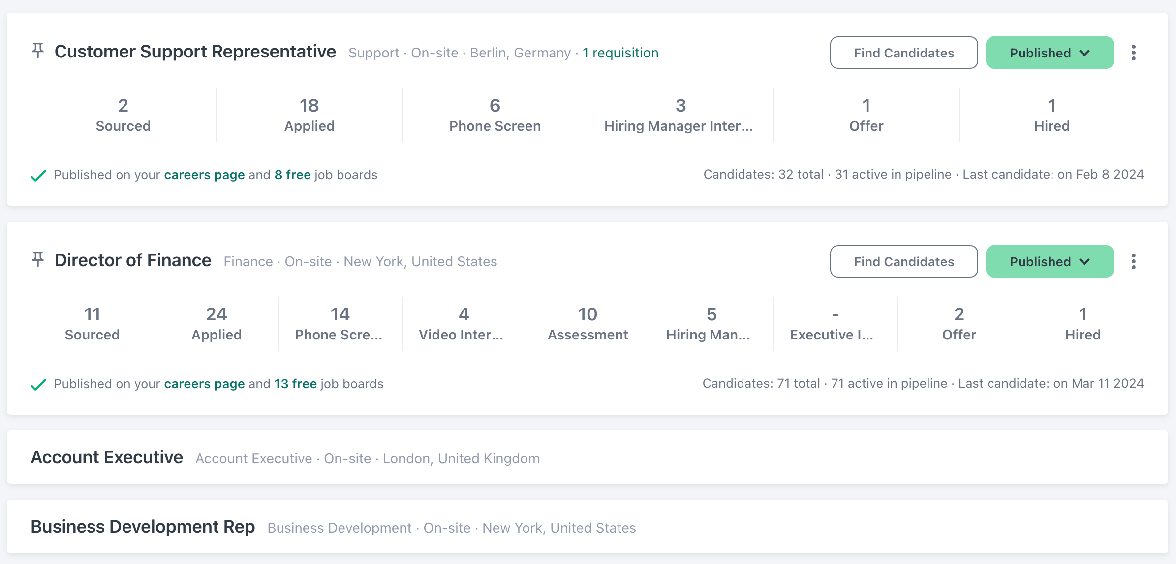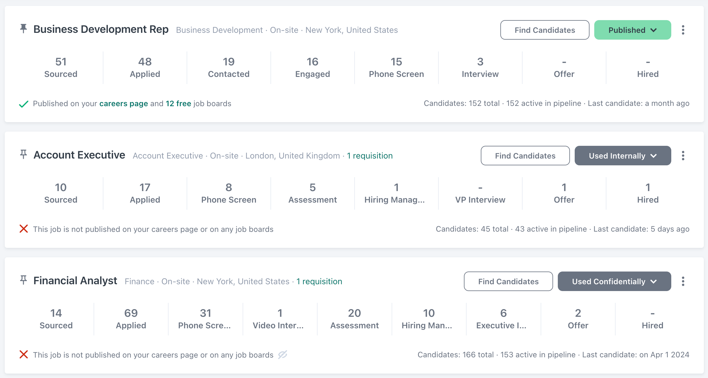Hiring Managers must be assigned to specific jobs and can only see candidates in those jobs.
