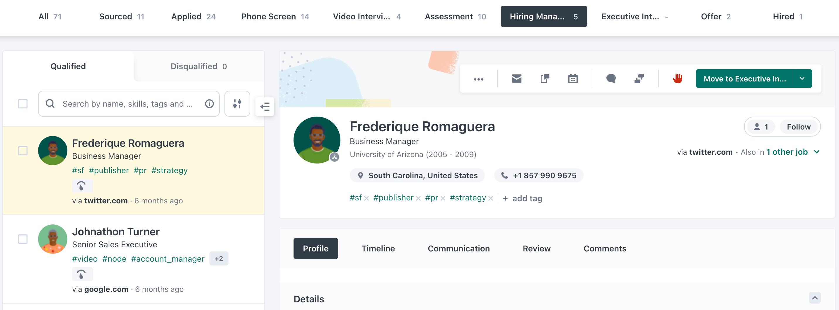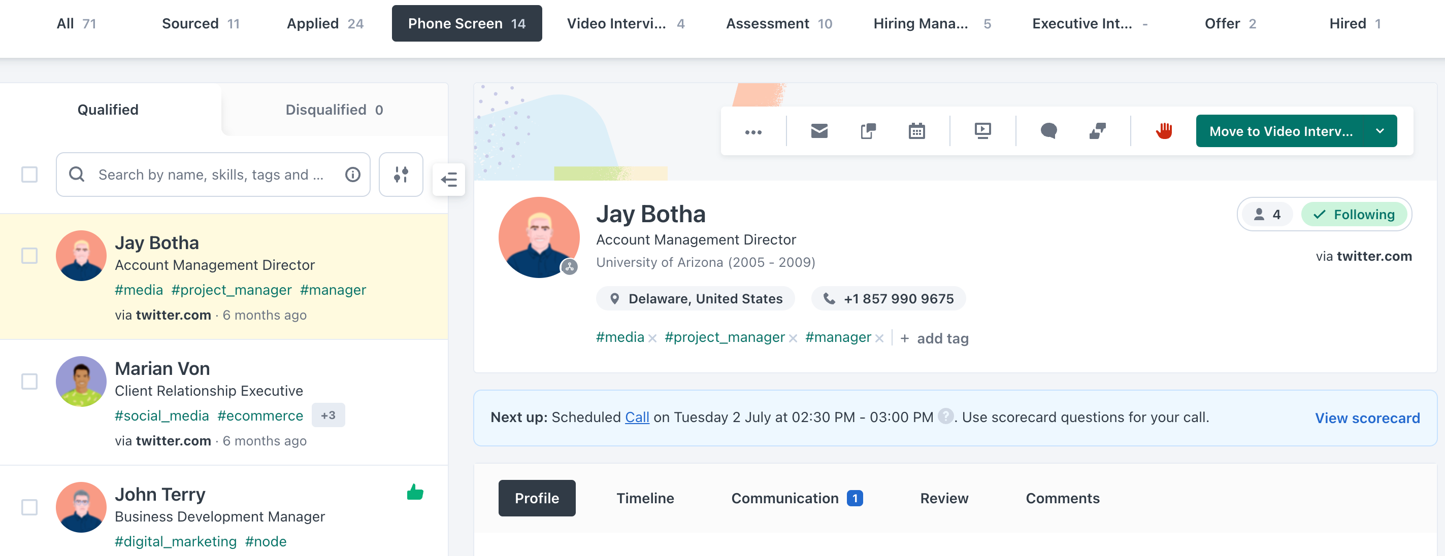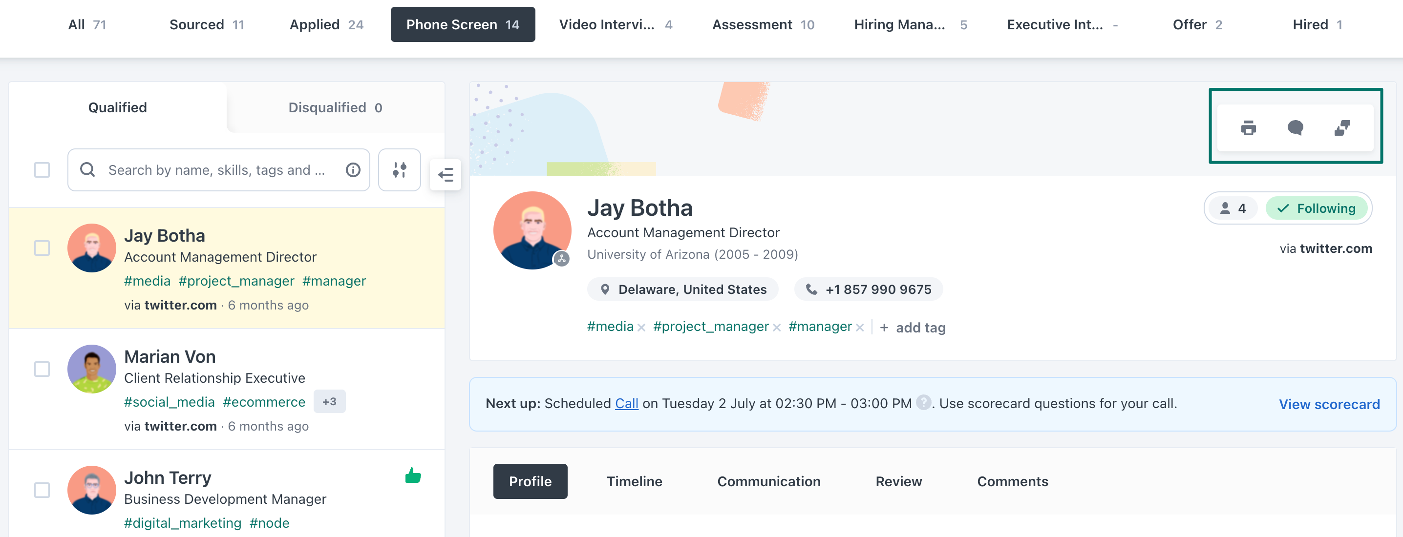 ✅ They can fully interact with candidates and perform actions such as evaluating candidates, leaving internal comments, and sending emails.