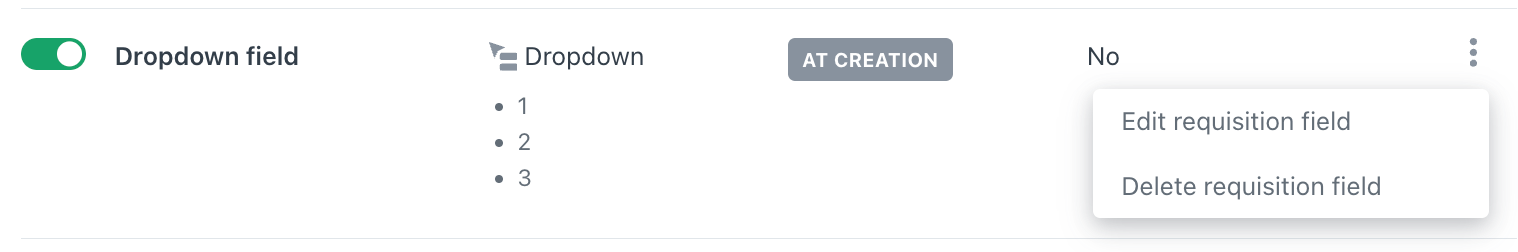 - Edit a requisition field; default requisition fields have editing limitations, e.g., you won't be able to add more dropdown options to the reason or employment type field.