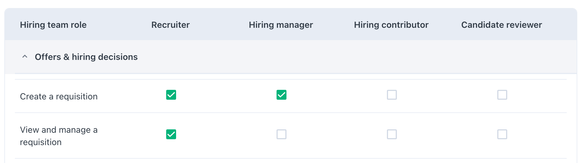 - Non-admin members can view all requisitions associated with jobs in their assigned department(s)/location(s), given that they also have the permission to view and manage a requisition under the roles and permissions settings. The only exception to this rule is confidential jobs, where non-admin members must be part of the hiring team to view related requisitions.